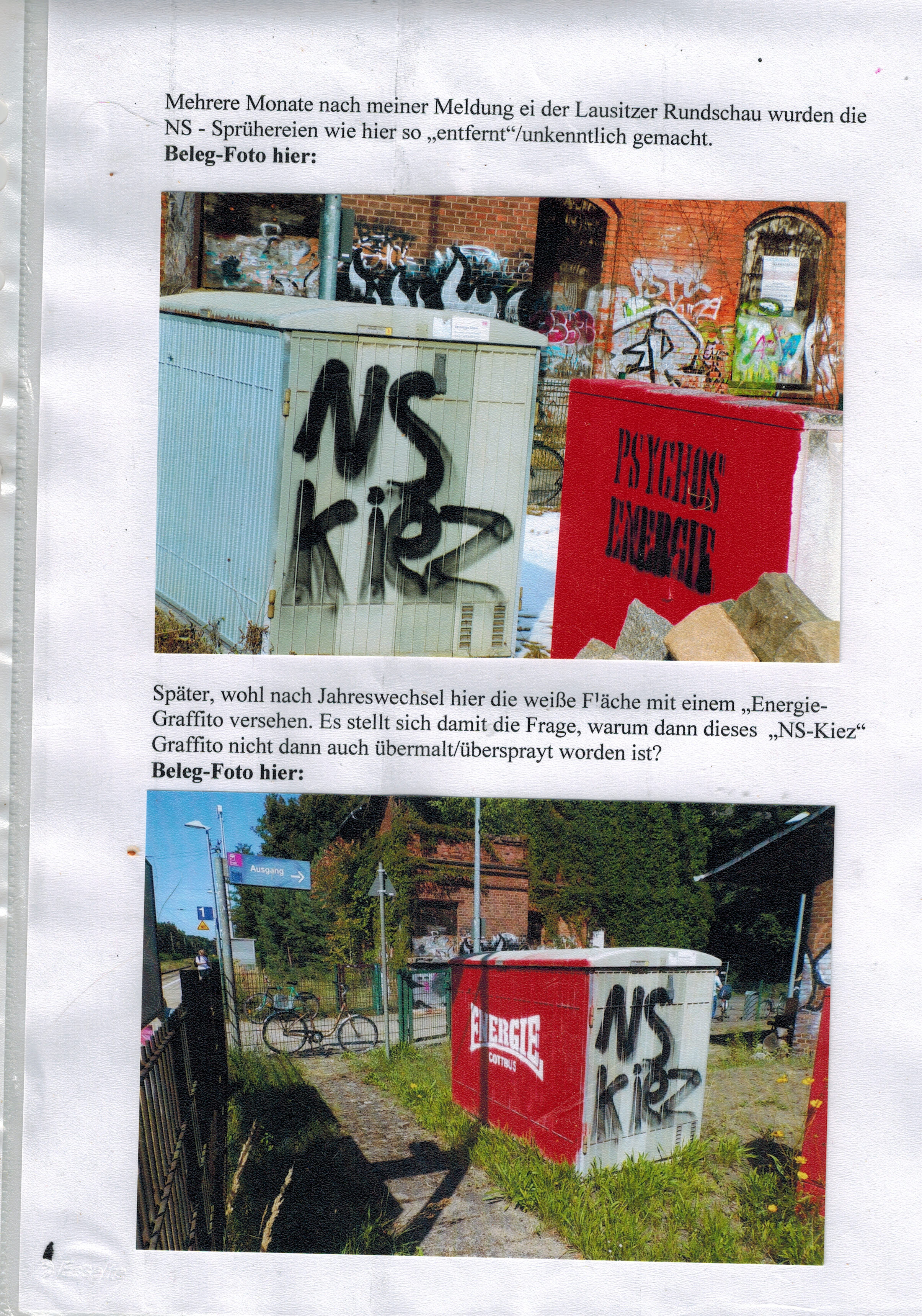 Dazu 8 Strafanzeigen wegen Beschädigung der unter Verbot stehenden Nazisymbole oder Volksverhetzung gegen mich, – zuletzt im August 2023 !