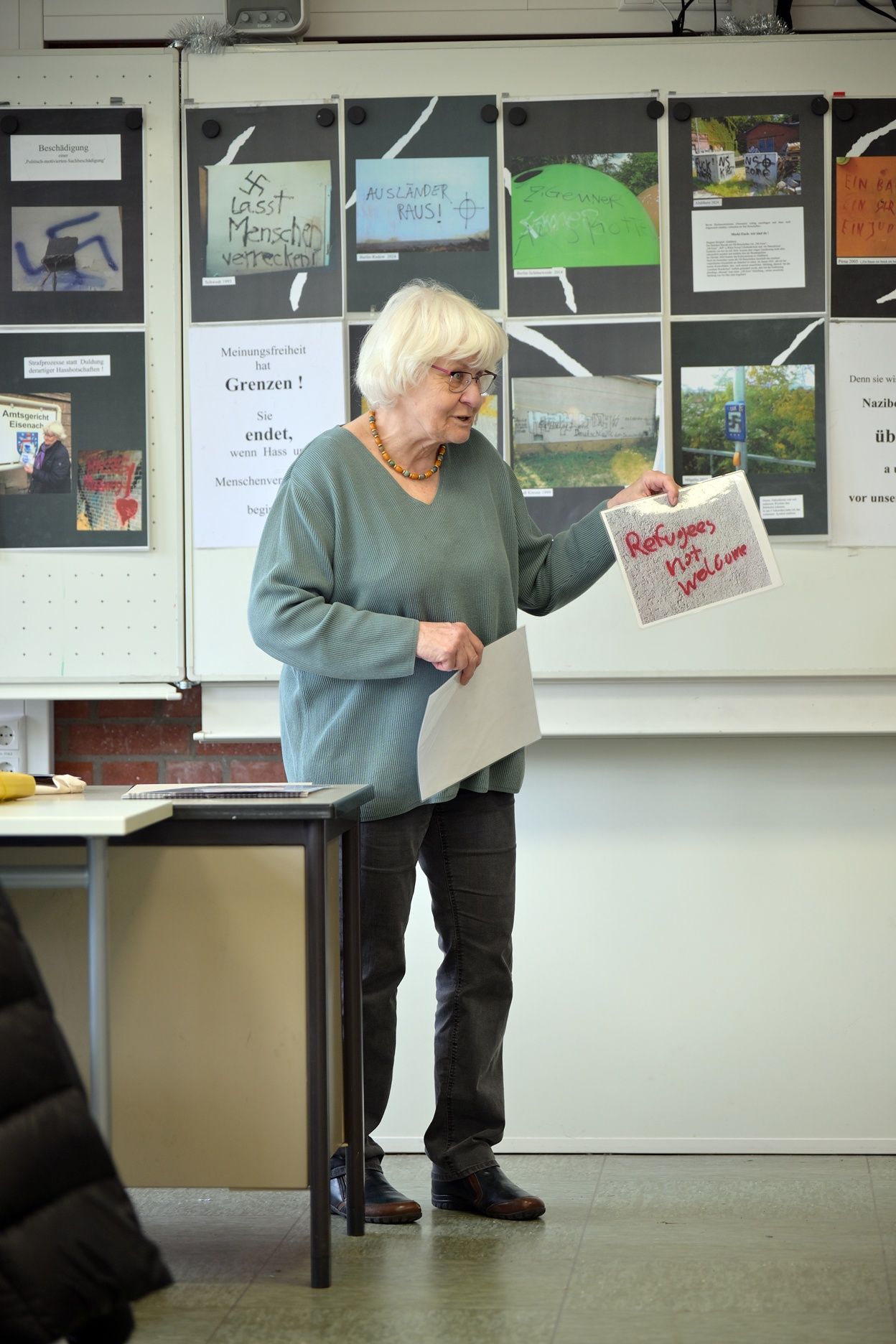 Die Einführung erfolgt unter Einbeziehung der Ausstellung Hass vernichtet (laminierte Folien) und der Beschreibung meiner Vorgehensweise vor Ort mit Schilderungen von Begegnungen mit den Urhebern der Hass-Botschaften.